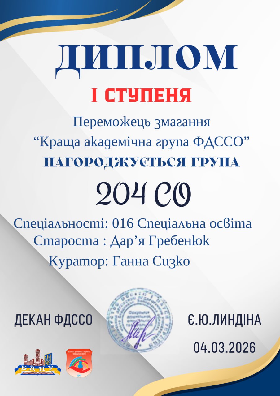 Кульмінацією заходу стало оголошення груп‑переможниць, які продемонстрували найвищу академічну успішність та громадську активність. Дипломом І ступеня відзначено групу 204СО (староста Дар’я Гребенюк), ІІ ступеня – 302СР (староста – Тетяна Бурлей) і ІІІ ступеня – 402ДО (староста Булаткіна Анастасія).
