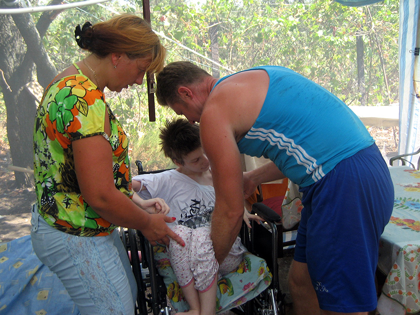Ще й трьох років не минуло, як у Бердянському державному педагогічному університеті розпочала активно діяти Благодійна Скриня «ДоброДій», а сьогодні ініціатор її створення – редактор газети БДПУ «Університетське Слово», журналіст Степан Герилів вручив ювілейний – 50-ий інвалідний візок – дівчині-переселенці з Донецька Олені Гаращук, на долю якої та її родини випало неймовірне випробування. Оленка – з першого дня свого народження прикута до ліжка невиліковною хворобою, діагноз – дитячий церебральний параліч (див. світлини). Не так давно родина Гаращуків, як біженці з Донецька, перебралися до Бердянська, придбала невеликі дачу й разом із трьома діточками налагоджують тут своє життя-буття…