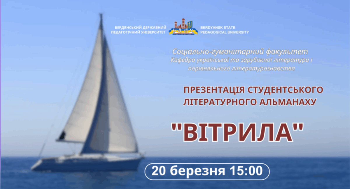(із презентації дванадцятого випуску студентського літературного альманаху «Вітрила») У малій…