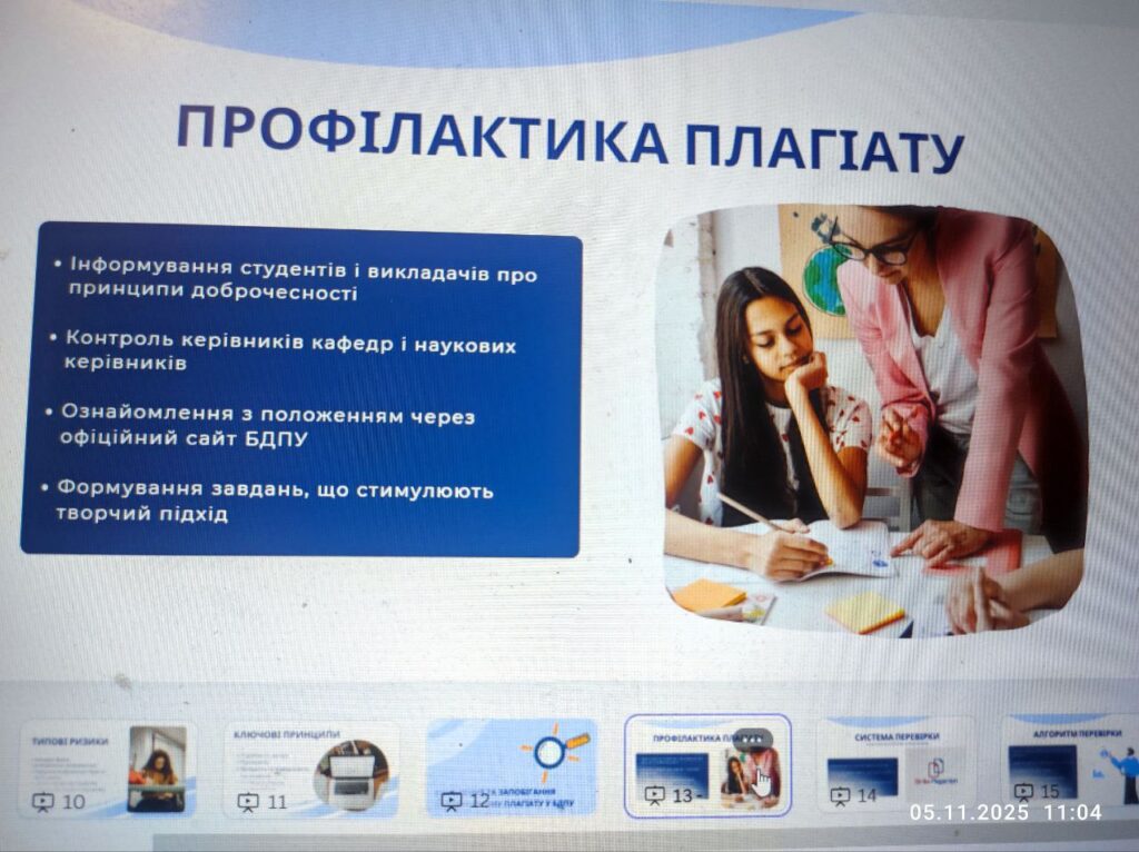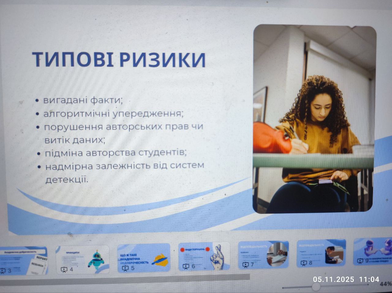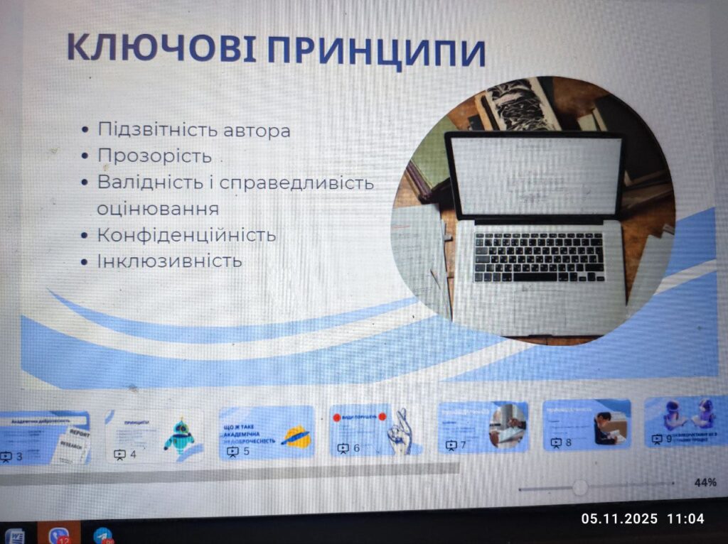 Учасники заходу наголосили, що дотримання принципів академічної доброчесності починається з щоденних звичок – уміння працювати самостійно, критично оцінювати інформацію, правильно цитувати джерела, поважати авторське право. Такі навички формують не лише грамотного фахівця, а й високоморальну особистість, готову до професійної відповідальності.