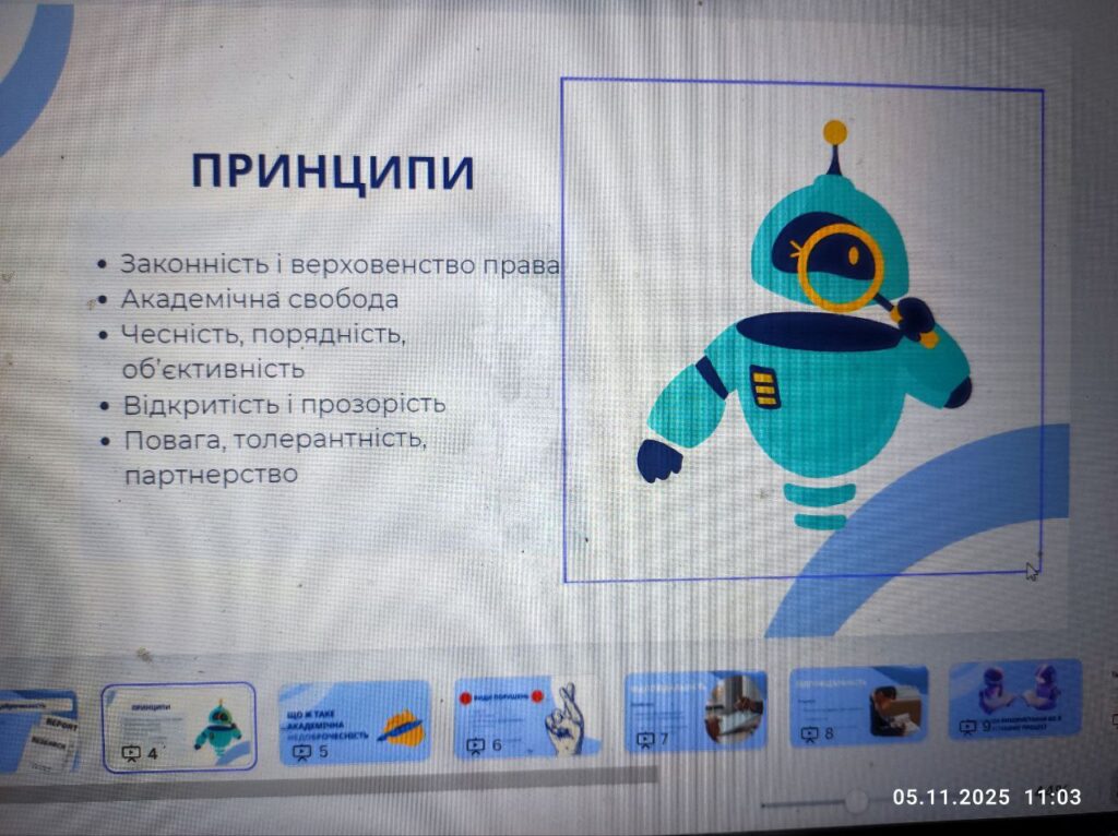 Метою івенту було поглиблення розуміння здобувачами вищої освіти важливості дотримання принципів чесності, відповідальності та поваги до інтелектуальної праці.