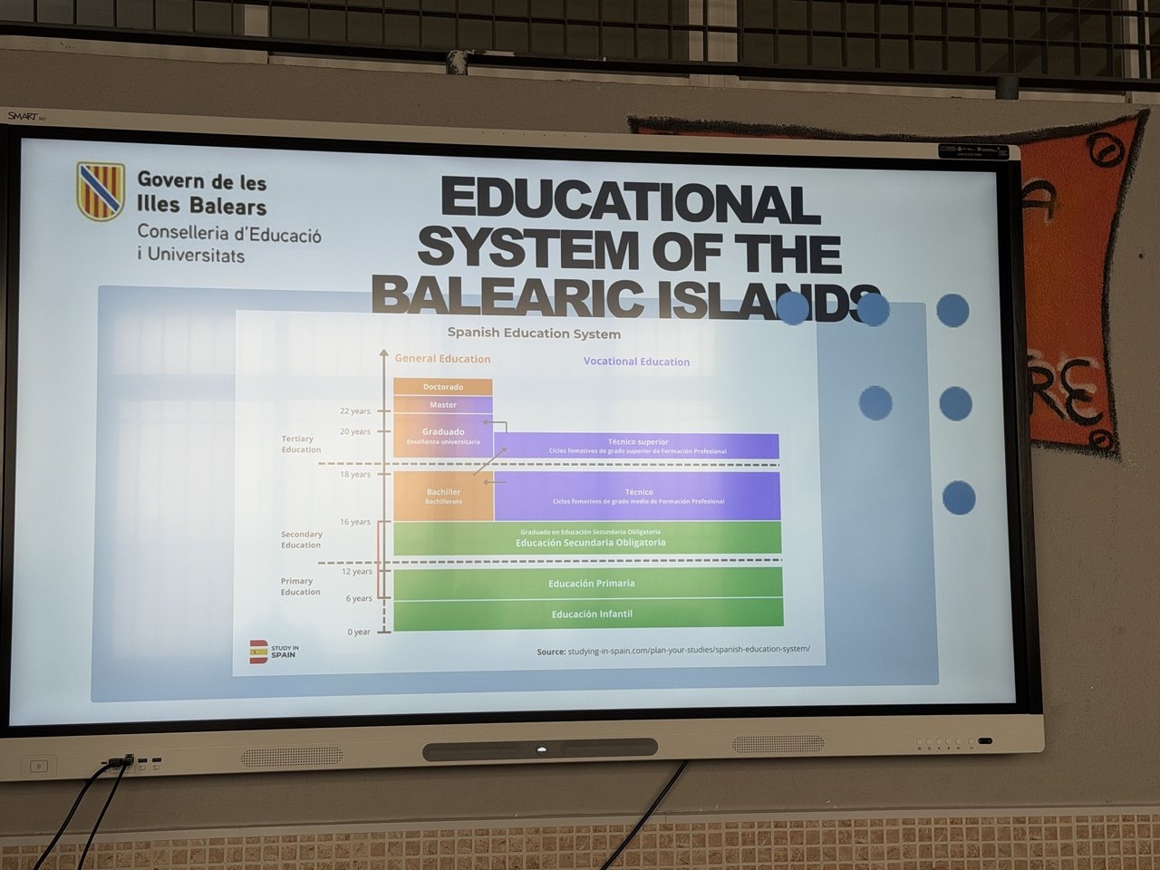 Програма на сьогодні включала відвідування середньої школи IES Santa Maria d’Eivissa, де учасників ознайомили з інфраструктурою закладу, а координаторка Nuria Torres представила презентацію школи, міста Ibiza та освітньої системи Балеарських островів. Крім того, учасники мали можливість спостерігати за реальними уроками англійської мови, математики, географії та історії в рамках формату Job Shadowing, а також поспілкуватися з педагогічною командою.