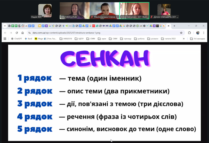 Паралельно з обговоренням теоретичних моментів використання корекційно-оздоровчих технологій, зокрема елементів театрального мистецтва, здобувачі 3 курсу спеціальності 012 Дошкільна освіта повправлялися у виконанні вправ, які в подальшому можна включати до змісту корекційної роботи з дошкільниками.