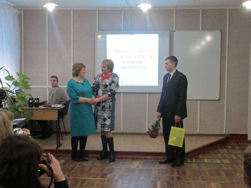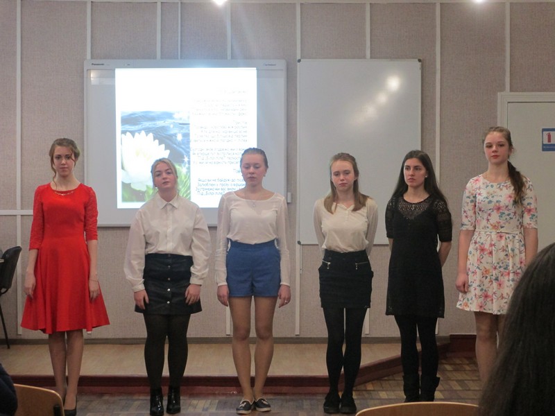 Узяла участь у заході й випускниця школи, нашого факультету – Тетяна Аксиненко, яка нині є вчителем англійської мови. Декламування вірша стало справжнім емоційним вибухом, оскільки мало хто залишився без сльози. Сама Тетяна Сергіївна не змогла втримати почуттів і заплакала наприкінці виступу. Це вкотре доводить, що поезія має величезну силу над людськими серцями, впливає на стан їхньої душі.