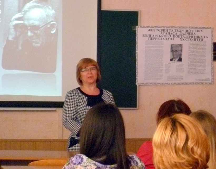 Цікавим та пізнавальним став виступ викладача Неврокопської професійної гімназії імені Димитра Талева (Республіка Болгарія) В. І. Кіревої, методиста з болгарської мови та літератури в Запорізькій області, командированої Міністерством освіти, молоді та науки Республіки Болгарії, яка розкрила хронологію життя видатного поета, окреслила вагомий внесок Атана Далчева як у болгарську літературу так і світову літературу зокрема.