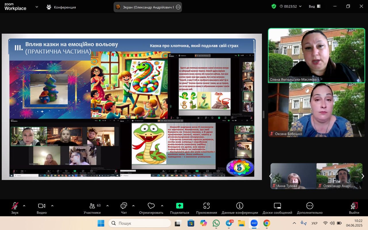 Особливу зацікавленість викликала презентація практичного досвіду «Вплив казки на емоційно-вольову сферу дітей з особливими освітніми потребами», яка глибоко перегукується з напрямами підготовки майбутніх фахівців з соціальної роботи та інклюзивної освіти. Хочемо відзначити фаховість, креативність і наукову обґрунтованість представленого матеріалу. Авторський колектив (Ганна Байдала – практичний психолог, Оксана Бобошко –  асистент учителя,Олена Ямпольська-Масляєва – учителька початкових класів гімназії №5 «Перлина») продемонстрував цілісну систему роботи, яка базується на практичному досвіді та чітко визначеній дослідницькій меті.