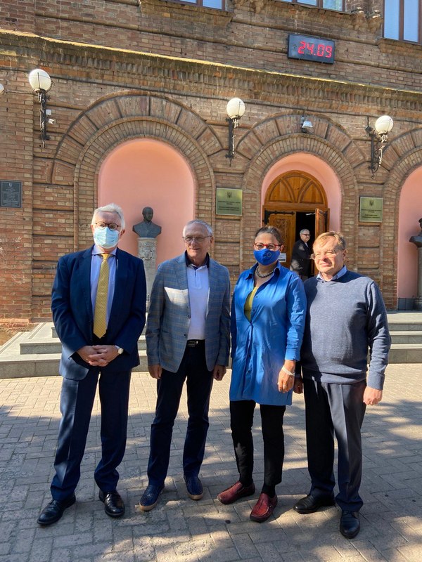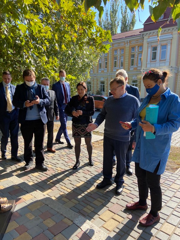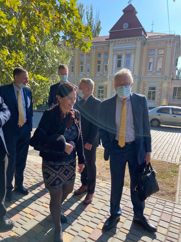 У п’ятницю, 24 вересня, до БДПУ завітала делегація від ЄС. В.о. ректора університету, проф. Ігор Богданов провів гостей з європейських інституцій корпусами, затишними парковими зонами, відремонтованими і сучасно обладнаними аудиторіями, лабораторіями, показав гімнастичну залу, розповів про історію університету та його сьогодення. Зупинився і на проблемних моментах, які є важливими для подальшої співпраці нашого закладу освіти з європейськими партнерами. Зокрема, акцентував на необхідності побудови критого мультифункціонального спортивного майданчика, на якому б могли займатися волейболом, баскетболом, бадмінтоном, гандболом та іншими видами спорту не тільки студенти університету, а й жителі Бердянська. «Ми подали документи до Державного фонду регіонального розвитку, сподіваємося, що проєкт розглянуть і підтримають. Якщо все вийде, ми повністю вирішимо проблему спортивної інфрастуктури», – поділився Ігор Богданов.