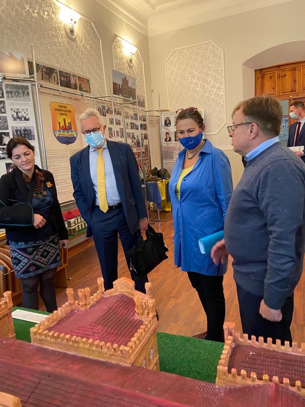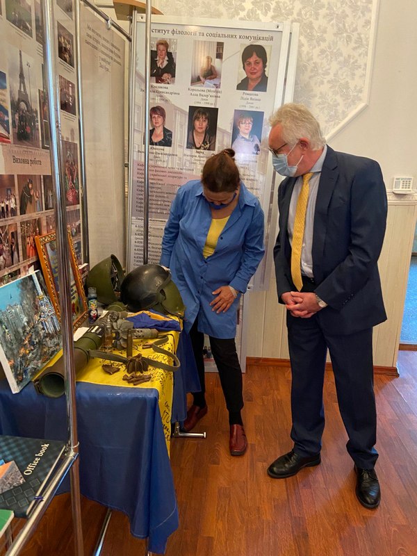 Очільник університету нагадав гостям, що ми співпрацюємо з Європейським інвестиційним банком у рамках Надзвичайної кредитної програми з відновленням України: «Наразі наш субпроєкт – капітальний ремонт гуртожитку № 1 – виконаний приблизно на 40 %. Сподіваємося, що програма буде подовжена, і я дуже хочу, щоб 1 вересня 2022 року у відремонтований гуртожиток поселилися студенти. Проєкт передбачає комплексне рішення – повністю замінені інженерні мережі, вода і водовідведення, опалювальні системи, електричне забезпечення, проведена термомодернізація даху і фасадів, внутрішнє оздоблення. Ми також враховуємо потреби маломобільних груп населення, тому передбачено пандус і обладнання блоку для проживання людей з інвалідністю. Увесь процес контролюють колеги з ПРООН, і ми самі зацікавлені, щоб все було виконано якнайкраще».