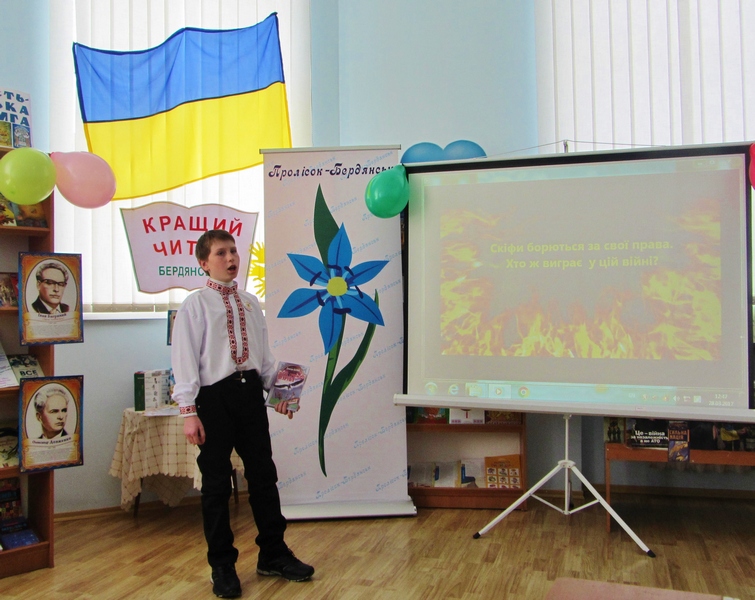 Сьогодні, 28 березня, в дитячій бібліотеці-філії №9 (завідуюча – О. С. Божко) проходив відкритий конкурс дитячого читання «Кращий читач Бердянська – 2017»  у вигляді творчого змагання дітей міста в рамках обласного читацького марафону «Книжковий Всесвіт дитинства» під девізом «Хай читання буде в радість».