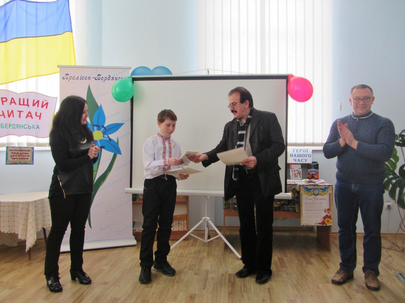 Член журі Степан Герилів разом із меценатом свята – керівником громадської організації «Пролісок» Іваном Харченком оголошували переможців,  нагороджували їх та учасників конкурсу дипломами, грамотами, цінними подарунками (див. світлини). Першість у змаганні виборола п`ятикласниця Бердянської гімназії №3 (бібліотека № 4) Ганна Єрьоменко, друге місце – семикласник ЗОШ № 11 Святослав Іванов (бібліотека № 10), третє – шестикласниця ЗОШ № 2 Дар’я Чепрасова (бібліотека № 9).