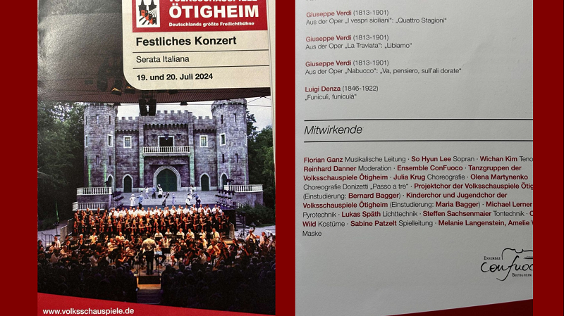 «Festliches Konzert/Serata Italiana». Таку назву мала концертна програма, яка відбулася 19 та 20 червня на одній із найбільших сцен під відкритим небом Німеччини, що має більш ніж сторічну традицію існування. Біля 4000 глядачів мали можливість насолоджуватися музикою італійських композиторів з опери, симфонії, балету Россіні, Верди, Доніцетті, Пуччіні та Респиги.