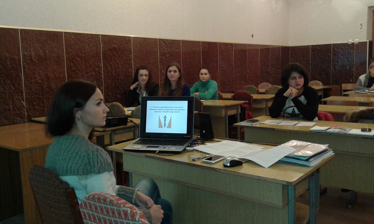 На занятті було проаналізовано основи діяльності дипломатичних представництв, дипломатичні візити представників різних держав та специфіку висвітлення дипломатичних зустрічей інтернаціональними ЗМІ.