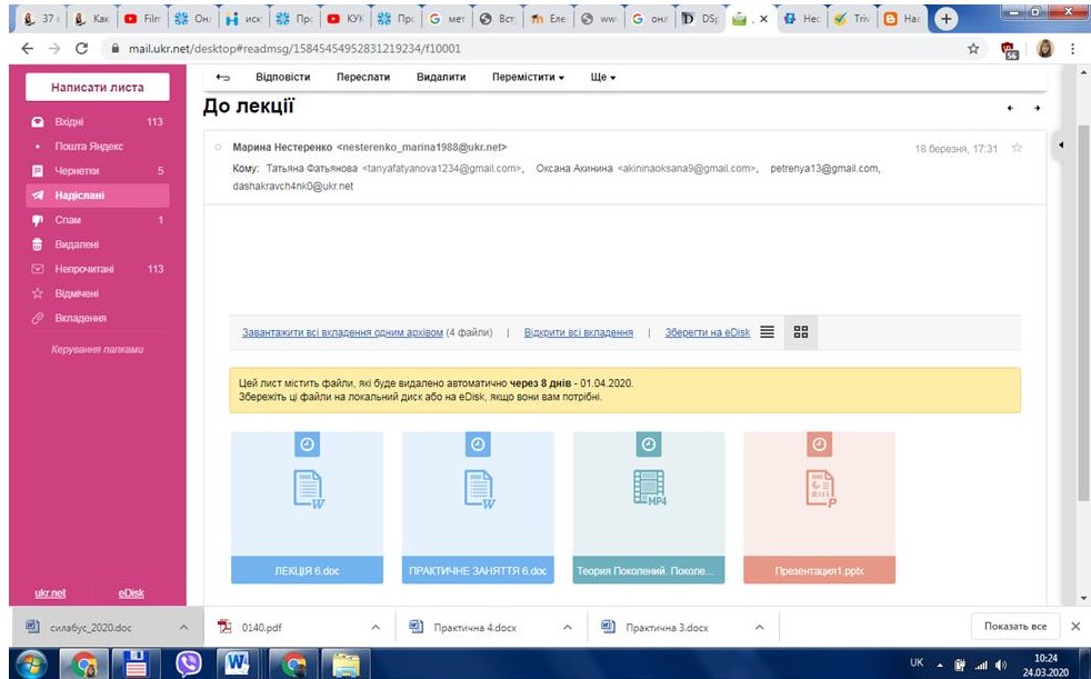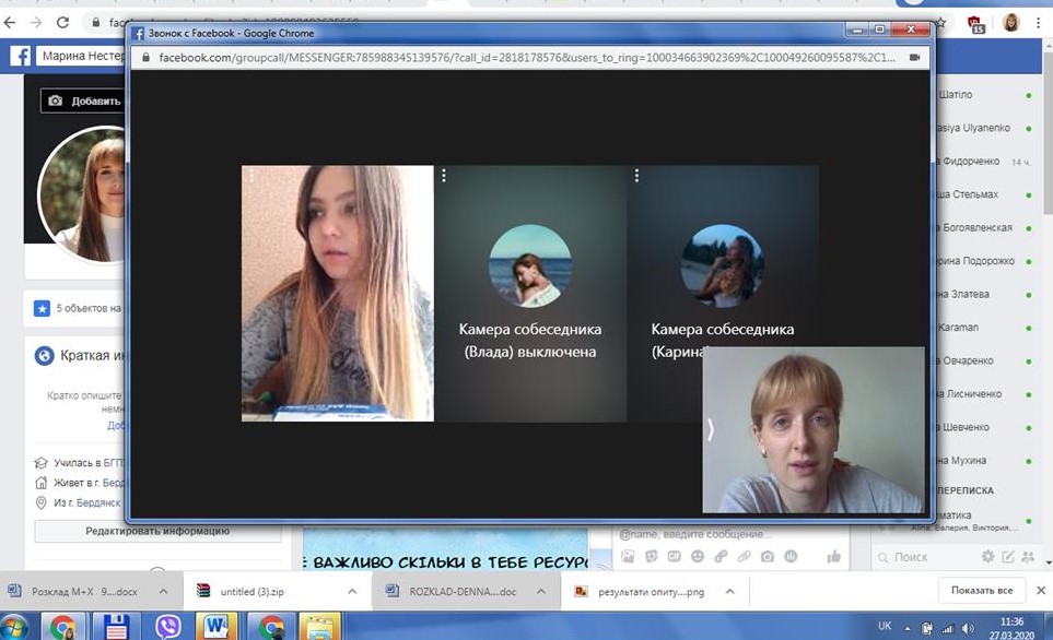 За спільним рішенням самих здобувачів вищої освіти старша викладачка дисциплін інформатичної освітньої галузі катедри початкової освіти Марина Нестеренко проводить онлайн-лекції за допомогою засобів для конференц-зв`язку, вбудованих у соціальних мережах Instagram і Facebook. Зв`язок якісний, за часом не обмежений, доступний не тільки користувачам персональних комп`ютерів, а й усім, хто володіє більш-менш сучасним смартфоном.