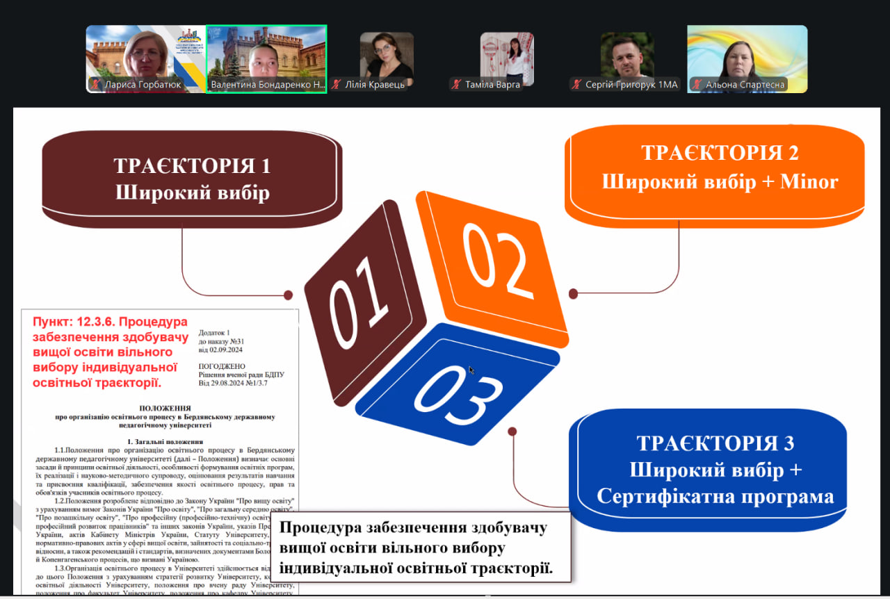 In the course of the discussion, students had the opportunity to ask questions and receive comprehensive answers regarding the selection of educational components. Clarifications were provided by Valentyna Bondarenko, Deputy Head of the Academic Department; Larysa Horbatiuk, Deputy Dean for Academic and Methodological Work of the Faculty; Representatives of the Faculty Student Council and senior students, who shared their personal experiences in forming an individual educational trajectory.