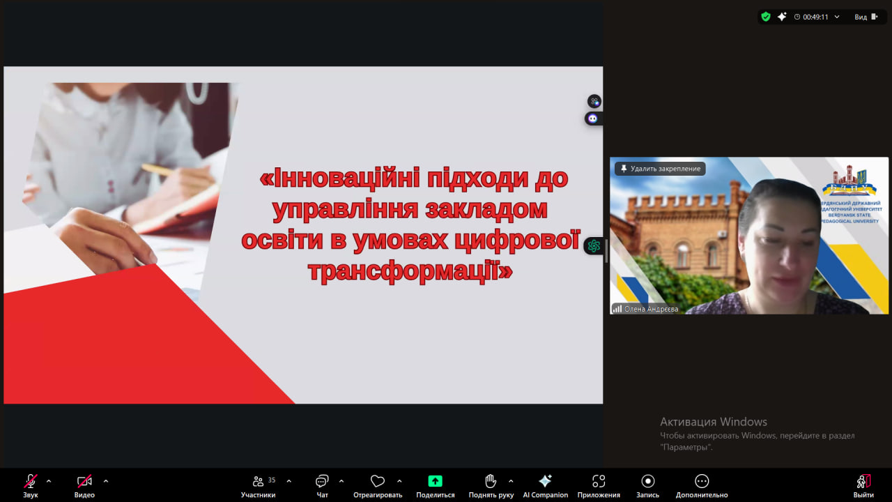 Despite the challenges associated with martial law in Ukraine, scientific activity continues to evolve. As part of Pedagogy Week, the Faculty of Psychological and Pedagogical Education and Arts organized Pedagogical Studios “Modern Trends in the Development of Educational Management” (moderators – Dr. Nadiia Vientseva, Doctor of Pedagogical Sciences, Professor at the Department of Pedagogy, and Olha Starokozhko, PhD in Pedagogy, Associate Professor at the Department of Pedagogy).