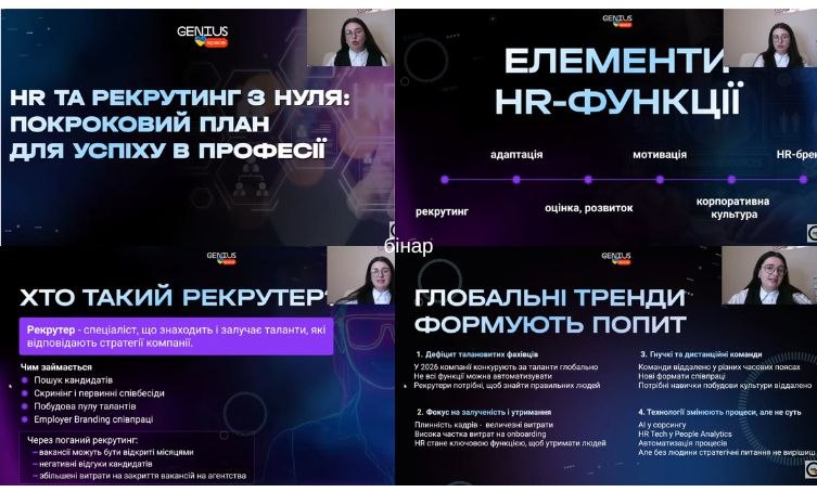 Faculty members and students of the Management specialty at Berdyansk State Pedagogical University participated in the webinar “HR and Recruiting from Scratch: A Step-by-Step Plan for Success in the Profession”, organized by Genius.Space, which took place on March 26, 2026.