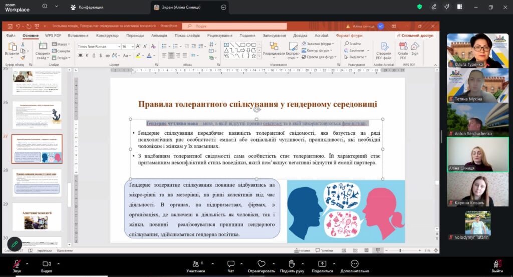 On April 14, 2026, within the framework of the educational component “Inclusive Approaches in Education” (lecturer – Doctor of Pedagogical Sciences, Professor Olha Hurenko), a guest lecture was delivered to third-level (educational and scientific/PhD) higher education students majoring in 011 Educational and Pedagogical Sciences by Candidate of Pedagogical Sciences, Associate Professor of the Department of Applied Psychology and Speech Therapy, Alina Synytsia.