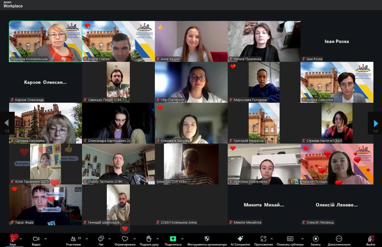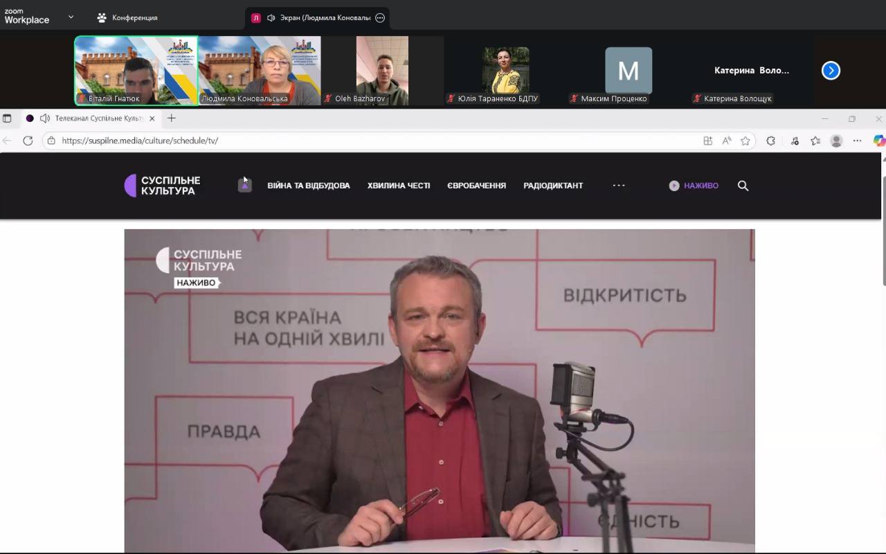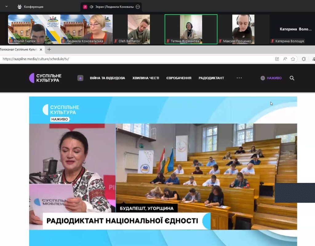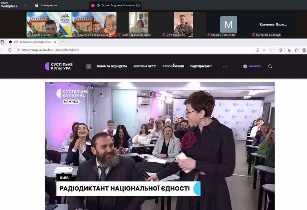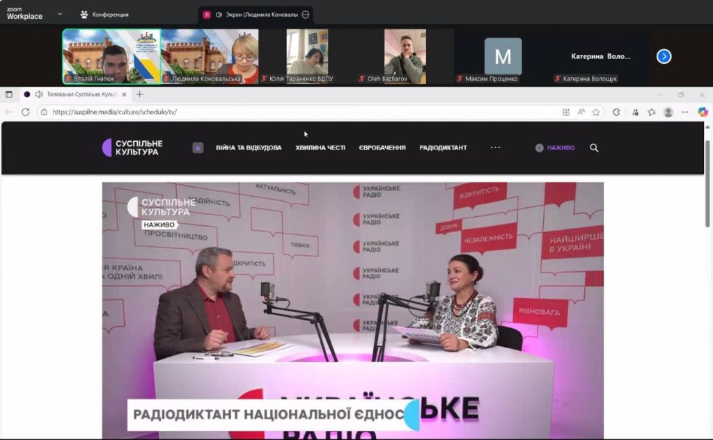 Those who joined online were united in a shared virtual meeting moderated by Lyudmyla Konovalska, Deputy Dean for Academic and Methodological Work. She emphasized that the Radio Dictation is not only a test of knowledge but also an opportunity for everyone to feel part of a large community united by the Ukrainian language.