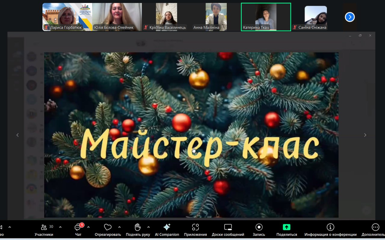 Так, університетська спільнота мала можливість відвідати відкриту лекцію “Атрибути автентичного українського різдвяного інтер’єру: від традицій до сучасності” (Ментор – Юлія Бєлова-Олейник), на якій згадали про дідуха, павуків, солом’яні прикраси, різдвяні зірки для колядування та свічки-трійці, що були обов’язковими елементами різдвяних декорацій в українських хатах, дізналися про їх призначення в новорічно-різдвяних обрядах та традиціях, розглянули їх конструкції та особливості виготовлення.