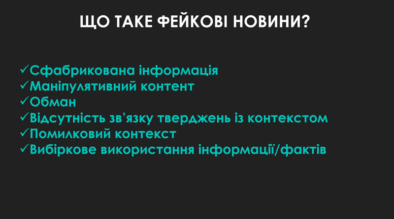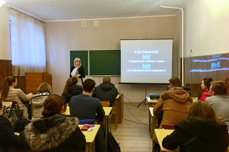На воркшопі майбутні журналісти аналізували сюжети провідних ЗМІ України на предмет дотримання чи недотримання фахових стандартів, вчилися розпізнавати фейки, що розповсюджуються різними каналами інформації, в тому числі – через онлайові соціальні платформи, навчилися розпізнавати підлаштовування реальності в ілюстративних матеріалах і надійність джерел інформації.