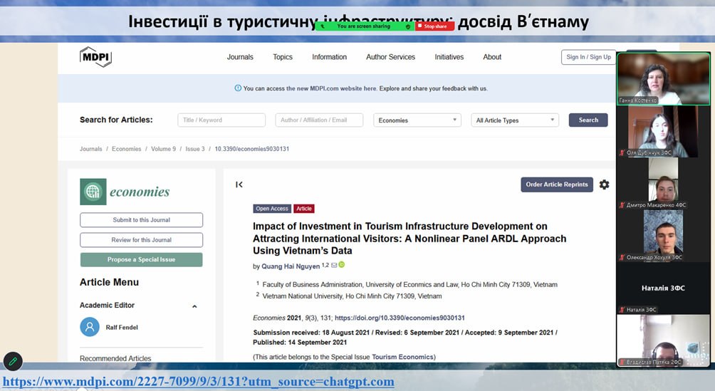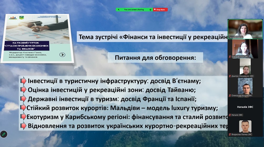 Фінанси та інвестиції у рекреаційній сфері: сучасні підходи та міжнародний досвід на засіданні гуртка «Сучасні проблеми економіки та фінансів»