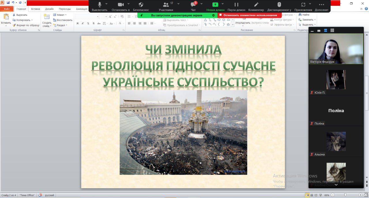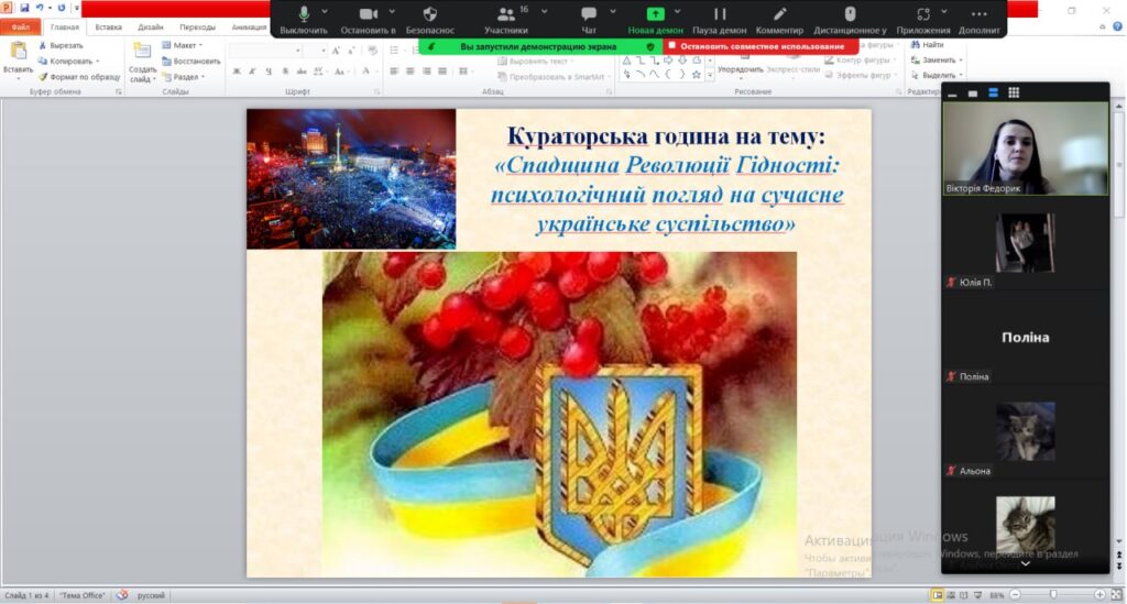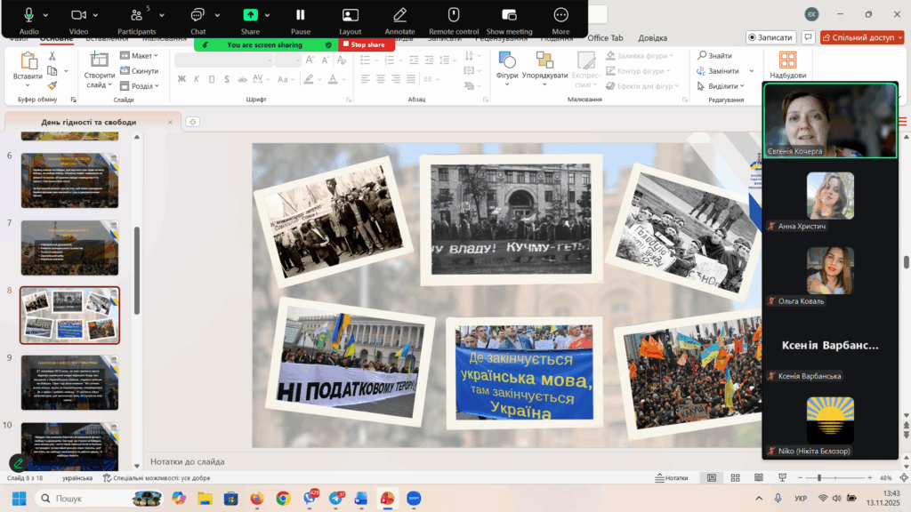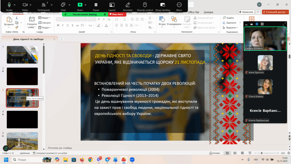 Здобувачі вищої освіти разом із кураторами розмірковували над тим, що означає бути гідним, вільним і відповідальним громадянином. Як цінності свободи, демократії та людської гідності проявляються у щоденному житті – у виборі, слові, вчинку.