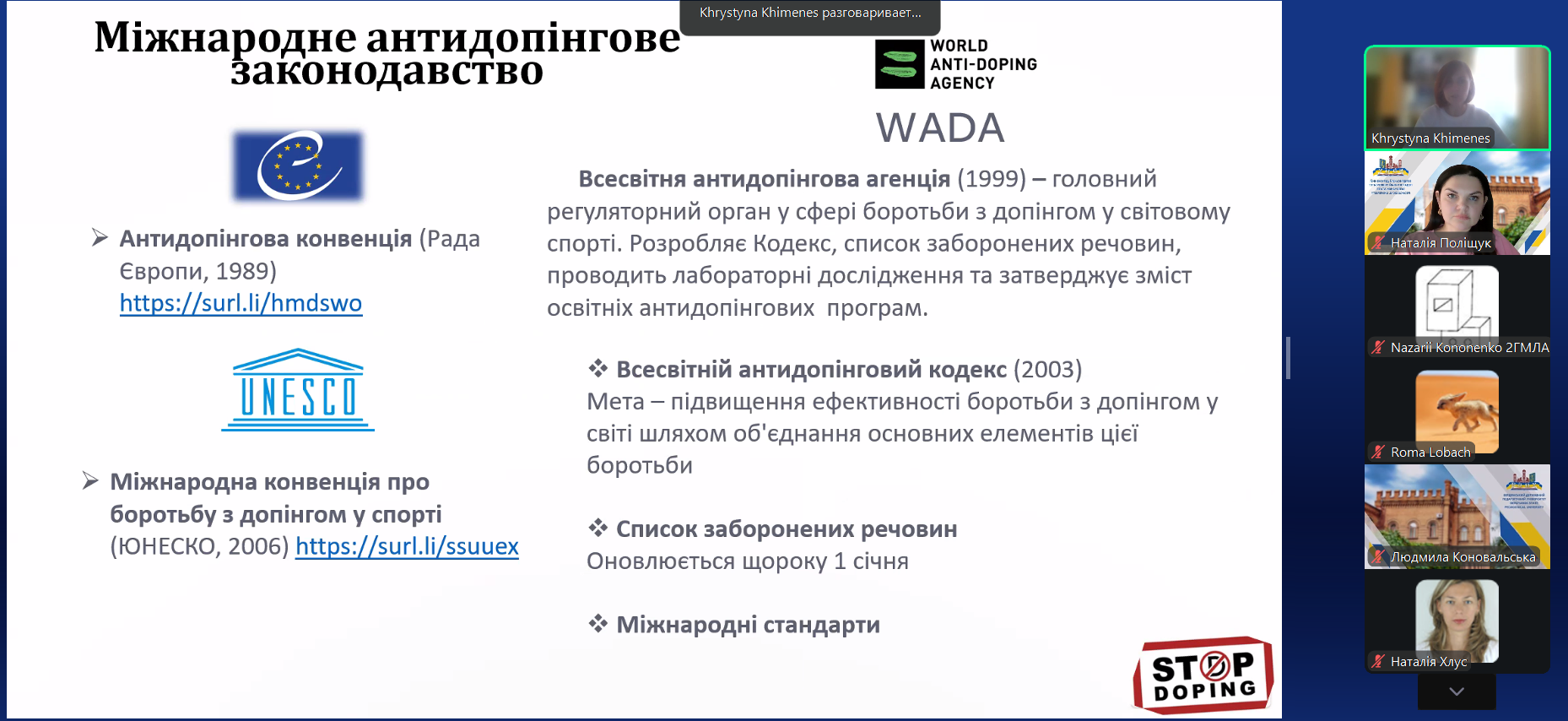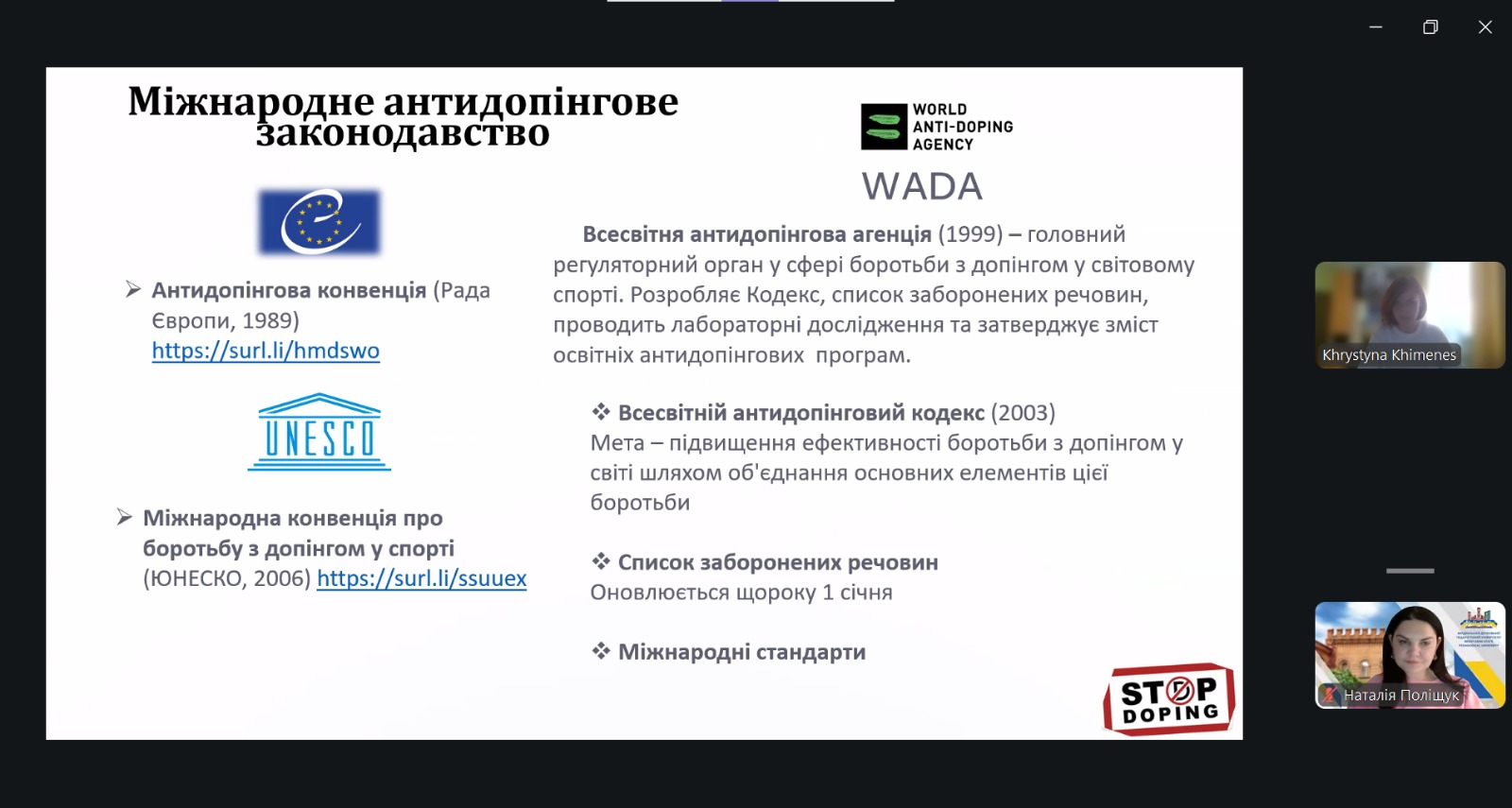 Гостьова лекція на тему антидопінгової системи для здобувачів спеціальності «Фізична культура і спорт»