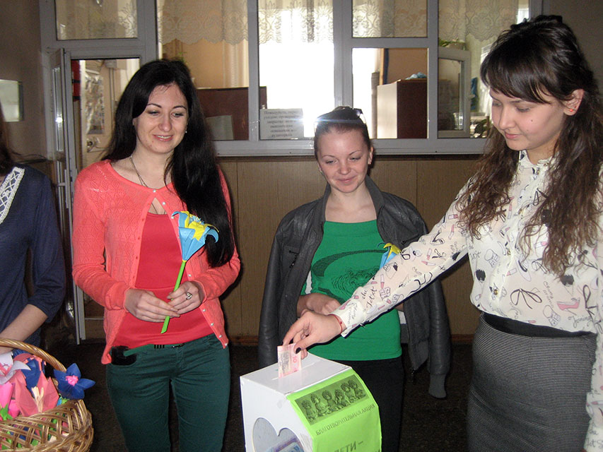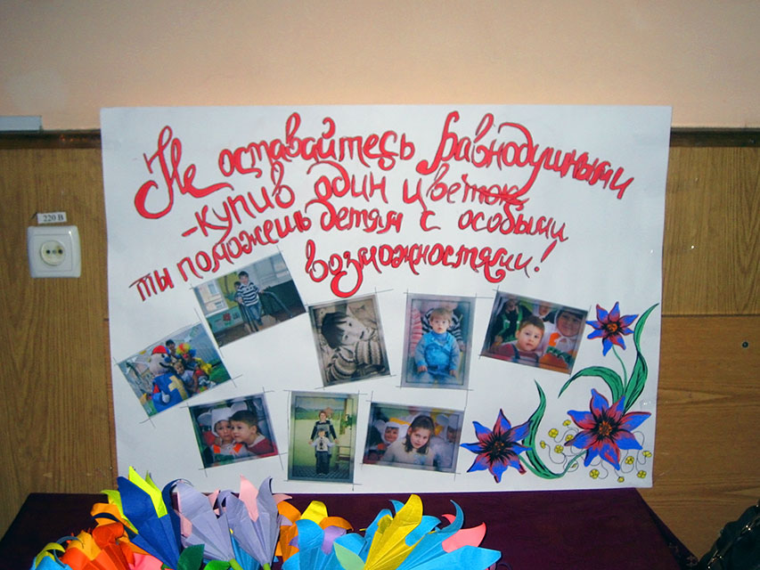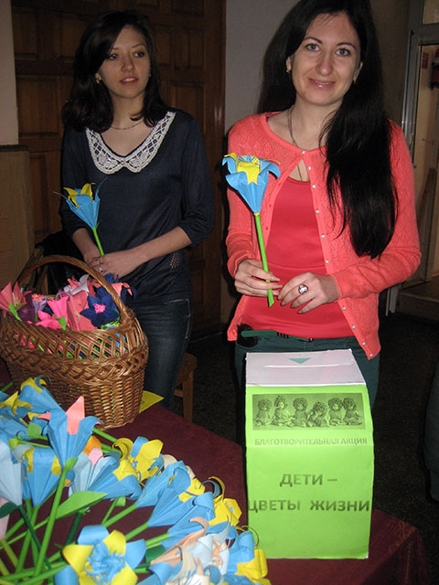 Не пахнуть, бо вони – паперові, а виготовлені працьовитими руками студентів-умільців Інституту соціально-педагогічної та корекційної освіти, щоби долучитися до цікавої акції, яку започаткували батьки дітей-інвалідів Центру соціальної реабілітації «Забота». Студентки 3-го курсу спеціальності «Корекційна освіта. Логопедія» Ірина Мусатова, Лілія Сіннікова та Марина Міщенкова, які недавно проходили практику в Центрі, й організували виготовлення та реалізацію в університеті більш як сотні цікавих та оригінальних паперових квітів (див. світлини).