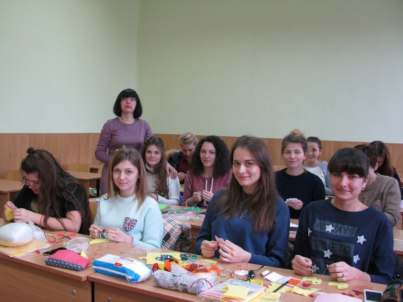 Організувала майстер-клас доцент кафедри дошкільної освіти Тетяна Єськова. Сьогоднішній майстер-клас – це початок цілої низки передсвяткових заходів, які пройдуть у грудні місяці. Виготовлені іграшки будуть презентовані на благодійному зимовому балі, а потім подаровані дітям з малозабезпечених сімей. Запрошуємо всіх бажаючих на наступні майстер-класи.