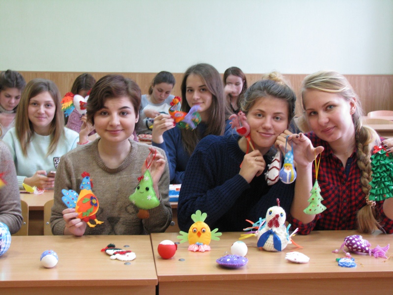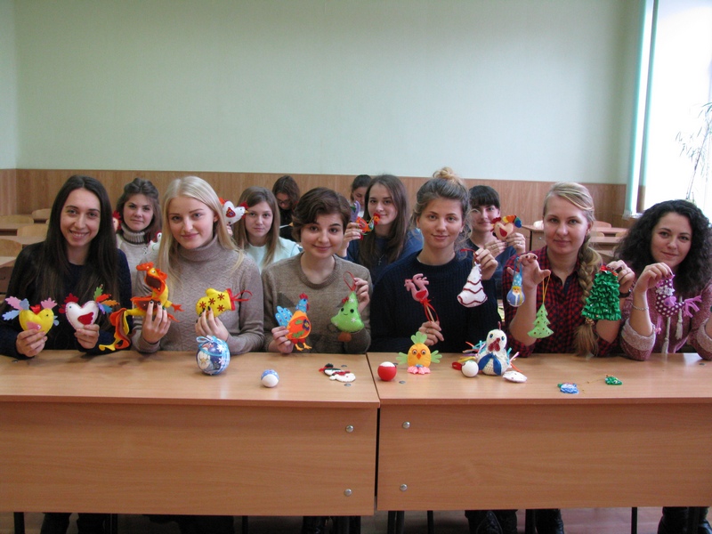 Сьогодні на факультеті дошкільної, спеціальної та соціальної освіти почала працювати майстерня з виготовлення новорічних іграшок. Студенти 3 курсу з великою зацікавленістю виготовили різноманітні іграшки з тканини: ялинки, півники, зірочки, рукавички та багато інших. В процесі створення іграшок студенти вкладали в них свою душу, творчість та майстерність. Іграшки вийшли надзвичайно привабливі та гарні.