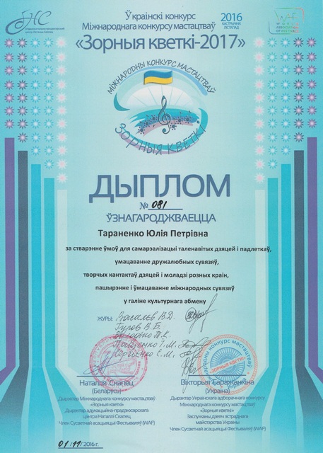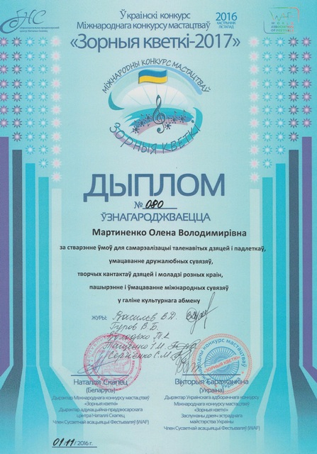 31 жовтня ц. р.  народний ансамбль естрадного танцю «МарЛен» Бердянського державного педагогічного університету брав участь у національному конкурсі мистецтв «Зорныя кветкі»  в Україні, який проходив у Маріуполі. Щорічно цей конкурс проходить у Мінську (Республіка Білорусь). У цьому ж році представники Білорусії та України об’єдналися для здійснення конкурсу з метою виявити та розкрити талановитих, яскравих виконавців.