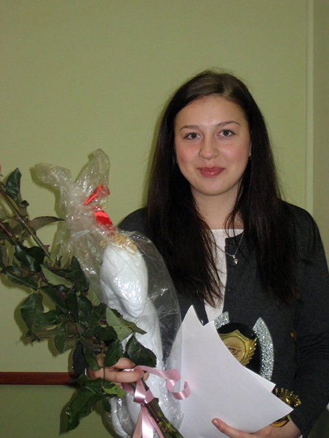 Сьогодні під час чергової наради дівчину вітали та вручали квіти-подарунки ректор університету, професор Вікторія Зарва та директор інституту Ольга Харлан (див. світлини).