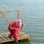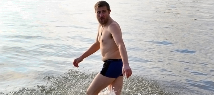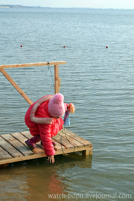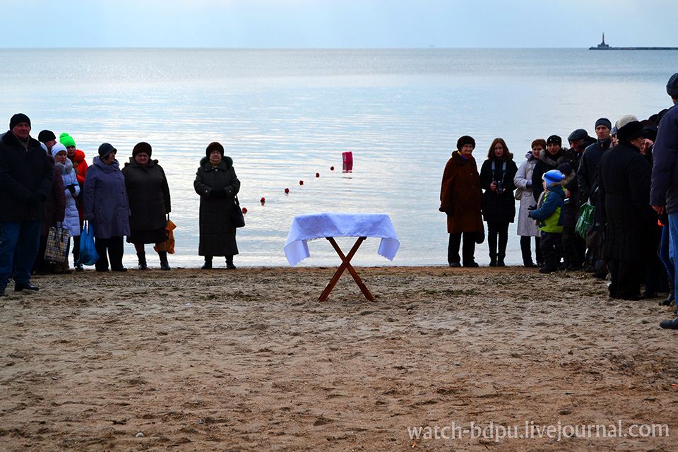 Простоявши біля каплиці з годину, люди рушили до моря, де від присутніх часто можна було почути зауваження щодо поганої організації запланованого. Річ у тім, що багато людей прийшло на пляж заздалегідь і їм просто нічого було робити, окрім як вештатися в різні сторони. До початку дійства усі встигли добре замерзнути, але це не зіпсувало святкового настрою. Коли прийшли представники церкви, люди звеселились трохи, а сонце, яке вийшло під час читання молитов, почало зігрівати натовп. Усі хрестилися та посміхалися. І ось відчайдухи пірнають у воду.