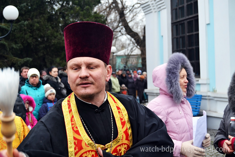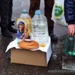 Зо три сотні людей стояли й посміхалися, наче й справді щось святе зігрівало їх в ту мить. Люди приходили з різними посудинами, наповненими водою. Не лише старенькі прибули послухати молитви та співи. Матері підводили своїх малих дітей ближче до священика, аби той окропив молоде покоління святою водою. Прийшли представники всіх поколінь і чи не хором повторювали одне одному : “Зі святом!”, доки священик окроплював народ святою водицею.