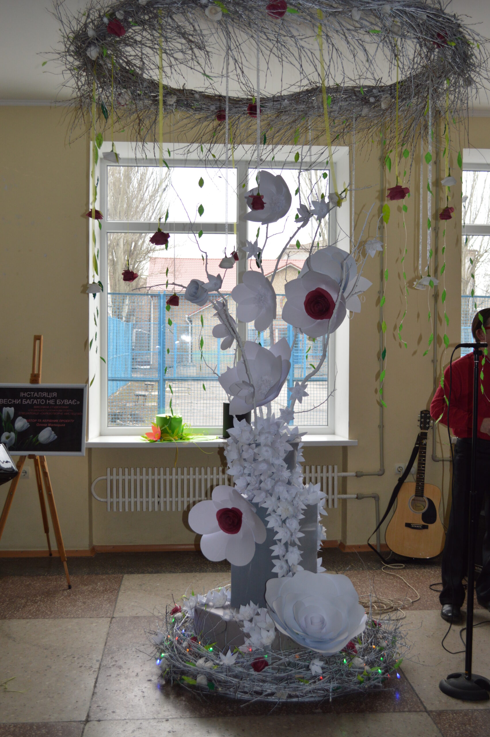 Пройдіться коридорами першого та третього поверхів університетського корпусу № 5, які недавно було прикрашено двома інсталяціями, об’єднаними темою «Весни багато не буває…». Перша з них – велике біле, уквітчане весняним цвітом, дерево, крону якого прикрашає пташине гніздо, що символізує собою зародження нового життя, пробудження природи від зимового сну.