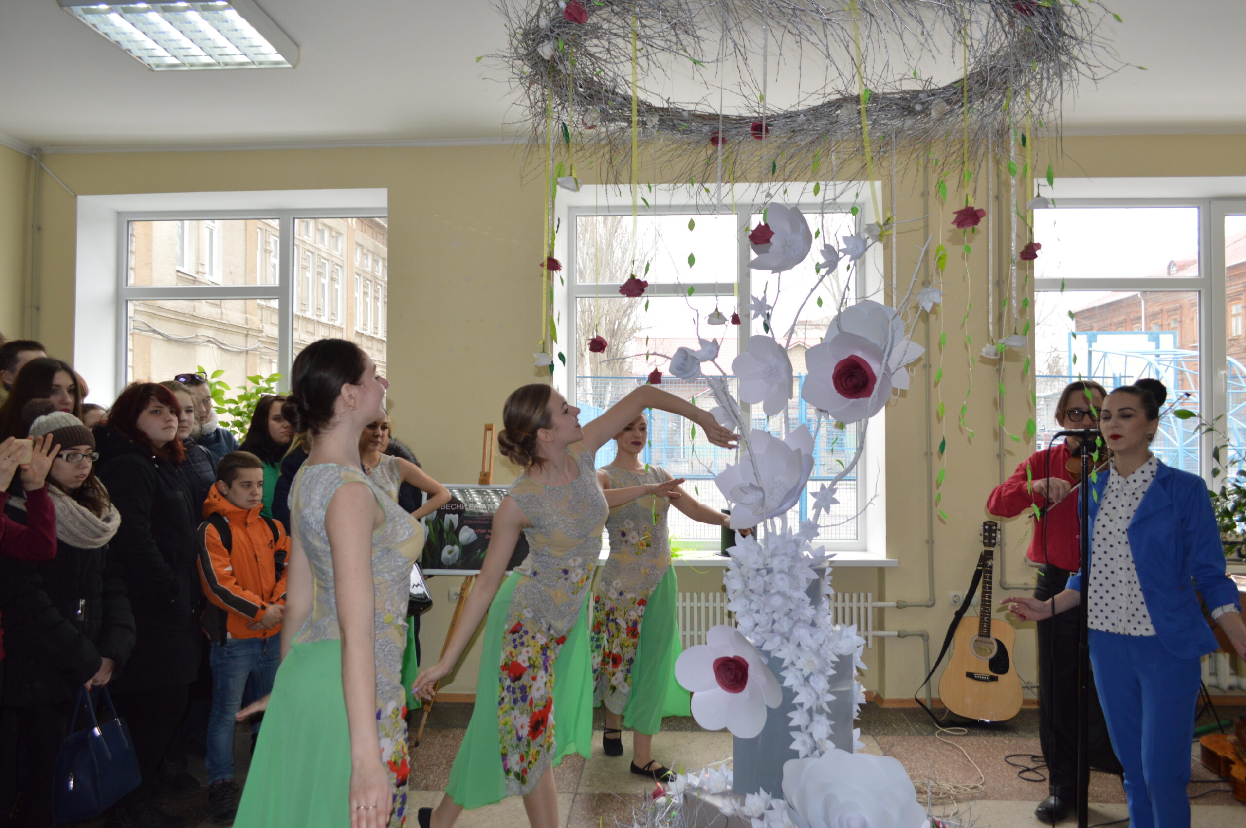 А учора, 23 березня, відбулося урочисте відкриття цих просторових композицій. Святковий настрій цій події надали неповторні танці чарівних мавок, у яких перевтілилися тендітні студентки спеціальності «Хореографія», та запальні мелодії, виконані народним ансамблем «Барвисті музики» (керівник – доцент П. Косенко). Велика кількість глядачів засвідчила, що краса не залишає нікого байдужим.