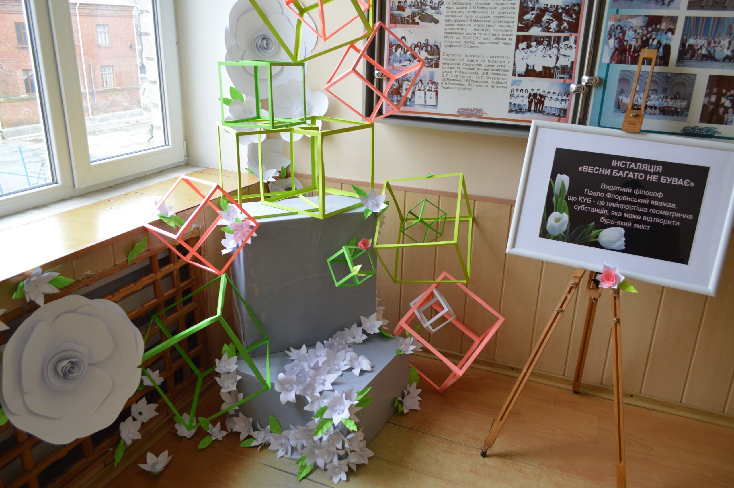 Підґрунтям для другої інсталяції стала філософська ідея Павла Флоренського про куб як найпростішу субстанцію, що здатна уособити в собі все бажане. Різнокольорові різноформатні куби, прикрашені квітами, наче запрошують усіх – і викладачів, і студентів, і гостей університету – прикликати весну, чарівну пору року, сповнену щастя і кохання, здатну здійснити найпотаємніші сподівання і мрії.
