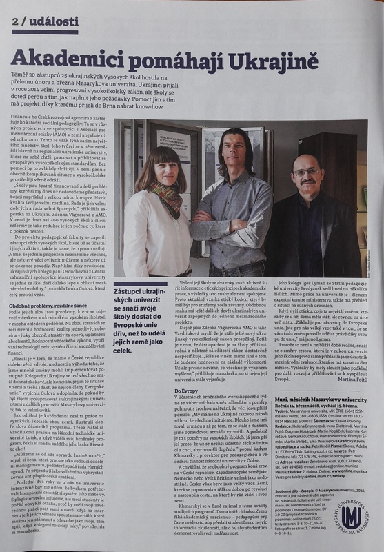 Газета університету імені Томаша Гарріга Масарика (м. Брно, Чехія) опублікувала статтю про візит представників українських ЗВО в рамках проекту «Прогресивне управління університетом» (див. світлину).