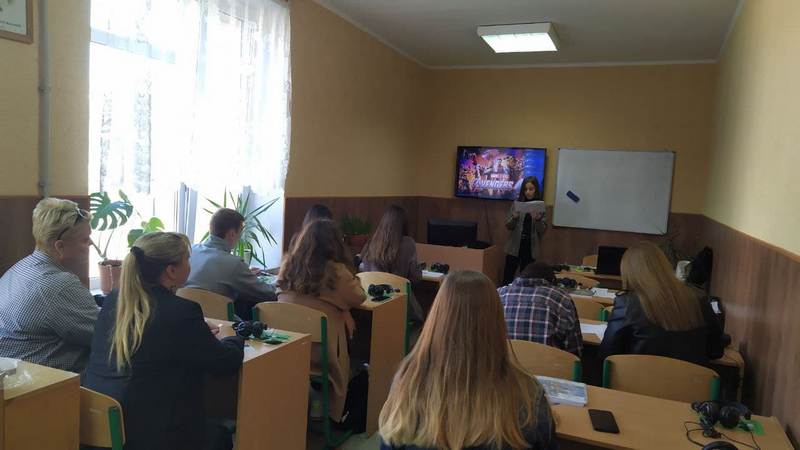 22 вересня доцент кафедри іноземних мов і методики викладання Оксана Халабузар спільно зі студентами групи 1 ГМЛА ФФСК, які навчаються за спеціальністю 035 Філологія (германські мови та літератури (переклад включно), перша – англійська, друга – німецька), провела інтерактивне заняття з теми «Movies».