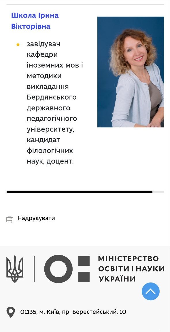 Цього року завідувачка кафедри іноземних мов і методики викладання Ірина Школа має честь представляти Бердянський державний педагогічний університет як член журі престижного всеукраїнського конкурсу «Учитель року – 2026» у номінації «Англійська мова».