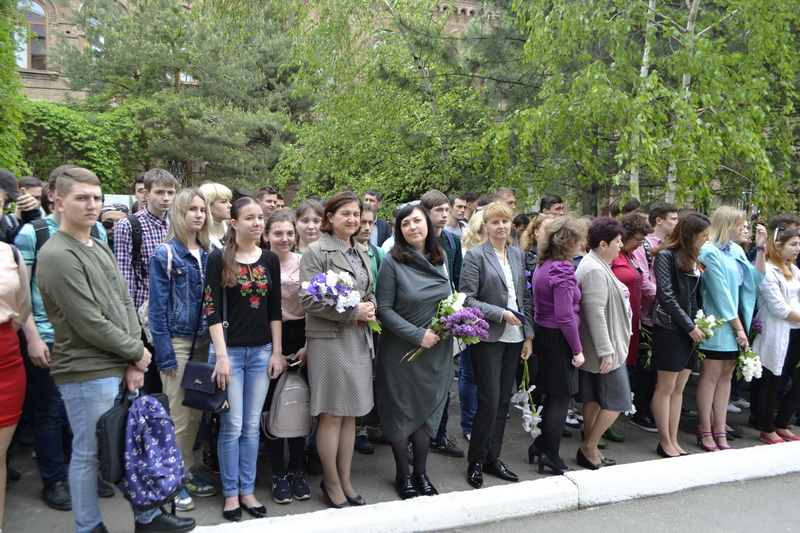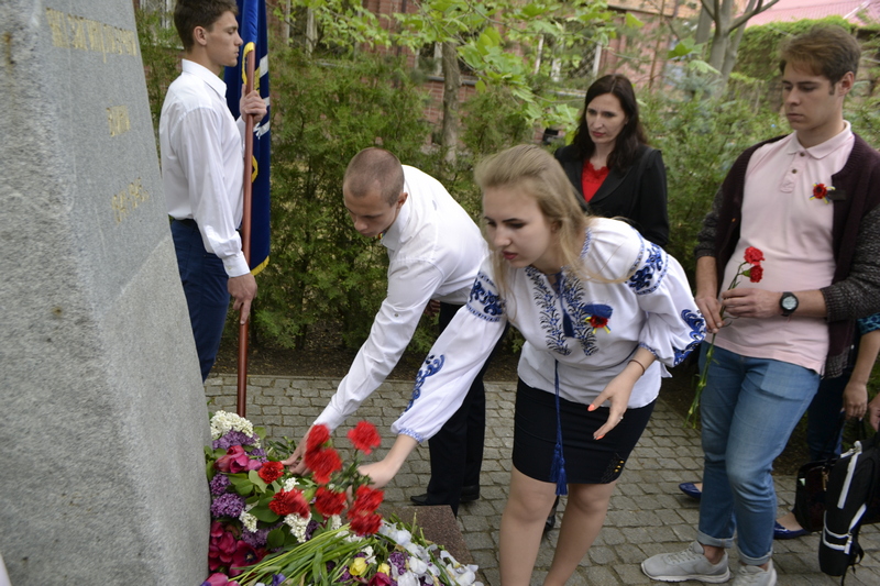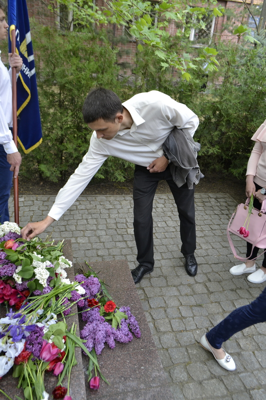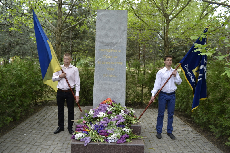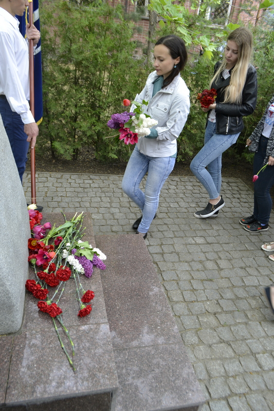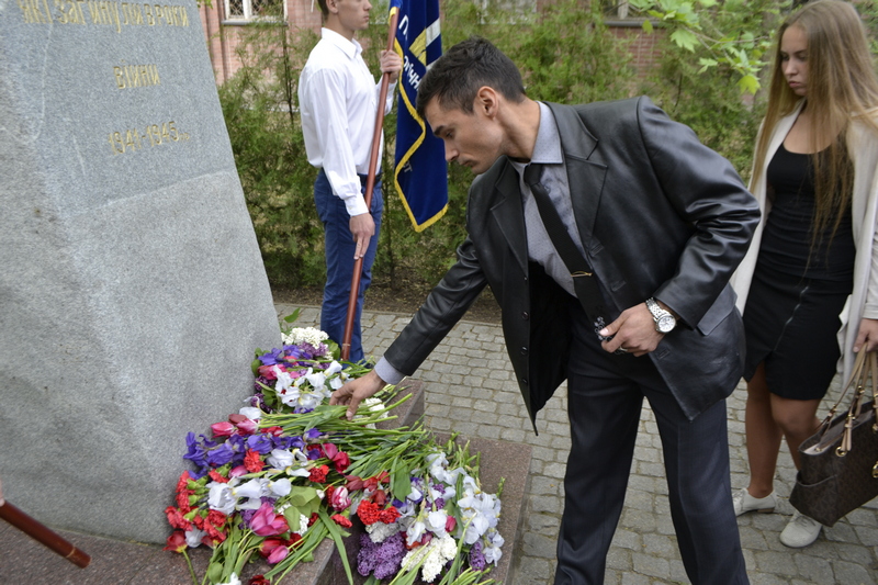 …Учасники мітингу, шануючи пам’ять загиблих у роки Другої світової війни хвилиною мовчання, покладаючи квіти до пам’ятника викладачам та студентам, загиблим у роки Другої світової війни, з болем у серці та тривогою в душі знову й знову не змогли знайти відповіді на питання: як могло так статися, що вже п`ятий рік у нас триває жорстока війна, нав`язана московськими окупантами?