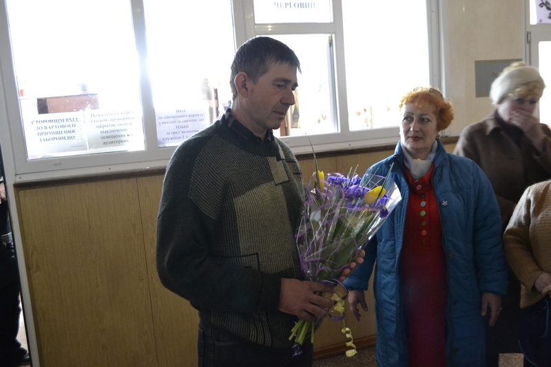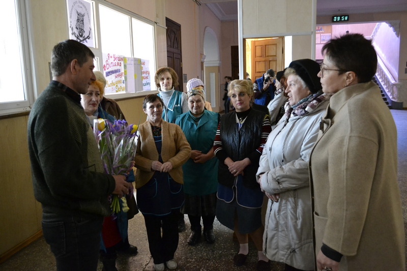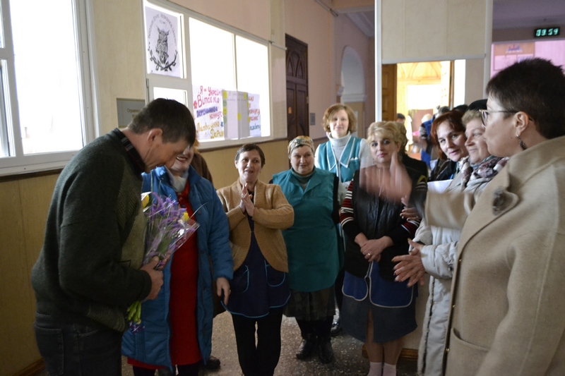 Сьогодні, 22 березня, до рідного університетського колективу після 21 місяця мобілізаційної прикордонної служби повернувся працівник адміністративно-господарської частини Володимир Андрієвський. Захисника тепло, як героя, зустрічали на його робочому місці помічник ректора з адміністративно-господарської роботи Ольга Яланська, комендант навчальних корпусів Людмила Шимкова, інспектор з охорони праці Марія Божко та «дівчата»-прибиральниці.