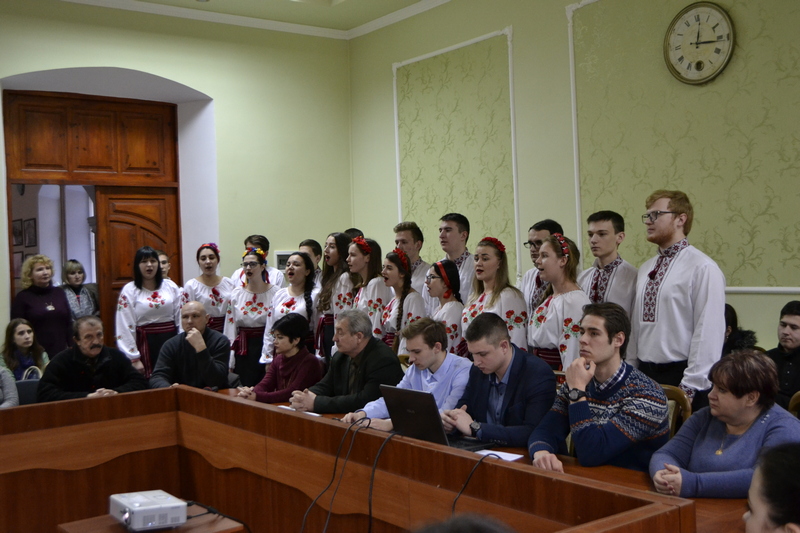 Учасників зібрання зворушливою українською патріотичною піснею вітав народний ансамбль народної пісні ФФСК «Золотий гомін» (керівник – доцент Олена Бузова).