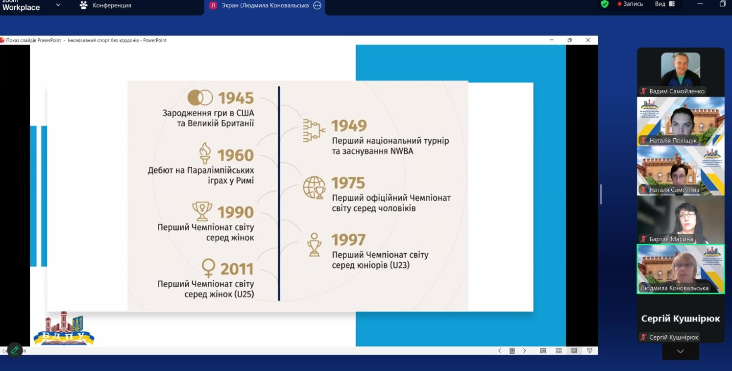 Зокрема, Вадим Самойленко, старший викладач кафедри, у своїй доповіді розкрив інноваційний підхід до формування рухової культури учнів засобами дитячої легкої атлетики; Людмила Коновальська, майстер спорту, доцент кафедри, кандидат педагогічних наук, презентувала тему «Інклюзивний спорт без кордонів: методичні засади баскетболу на візках». Доповідь Наталі Самсутіної, майстра спорту, доцента кафедри, кандидата педагогічних наук, була присвячена темі використання модуля «Рінго» як ефективного засобу реалізації компетентнісного підходу у фізичному вихованні учнів. Всі доповіді викликали жвавий інтерес і активне обговорення серед учасників.