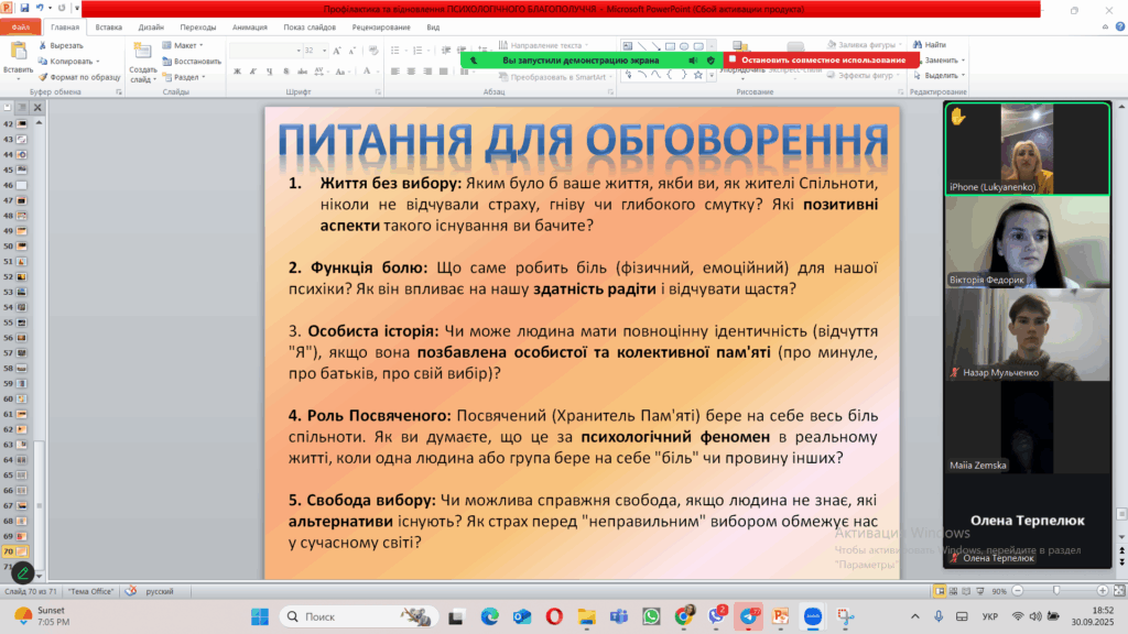 Кінолекторій «Осінній інсайт»підтвердив цінність фільмотерапії як психологічного інструменту, що допомагає долати емоційну апатію та стимулює до глибокого особистісного інсайту.