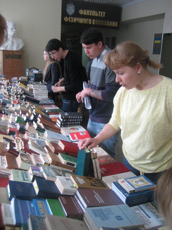 Сьогодні протягом трьох годин в фойє 5-го університетського корпусу студентам та викладачам традиційно пропонувалися десятки  найменувань літературних та наукових видань різних років, біжутерія, іграшки, прикраси, подаровані організаторам небайдужими патріотами для реалізації.