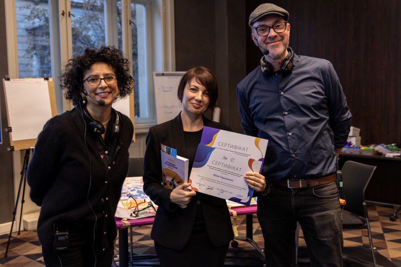 Під час урочистого вручення сертифікатів учасники програми отримали у подарунок книгу Дженіс Лоббан «Арттерапія для військових ветеранів: травма та образ» — важливе видання, що поглиблює розуміння терапевтичних підходів у роботі з травмою.