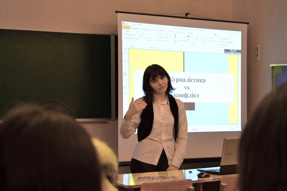 За матеріалами сайту Школи журналістики УКУ проект «Конфлікт у медіа і медіа в конфлікті: донесення дражливих питань через засоби масової інформації», спрямований на те, щоб посилити спроможність українського суспільства вирішувати конфлікти через підвищення якості українських ЗМІ. Проект спрямовано на журналістів і студентів напрямів підготовки журналістика, для розуміння особливостей висвітлення конфліктів, військового протистояння на Сході України.