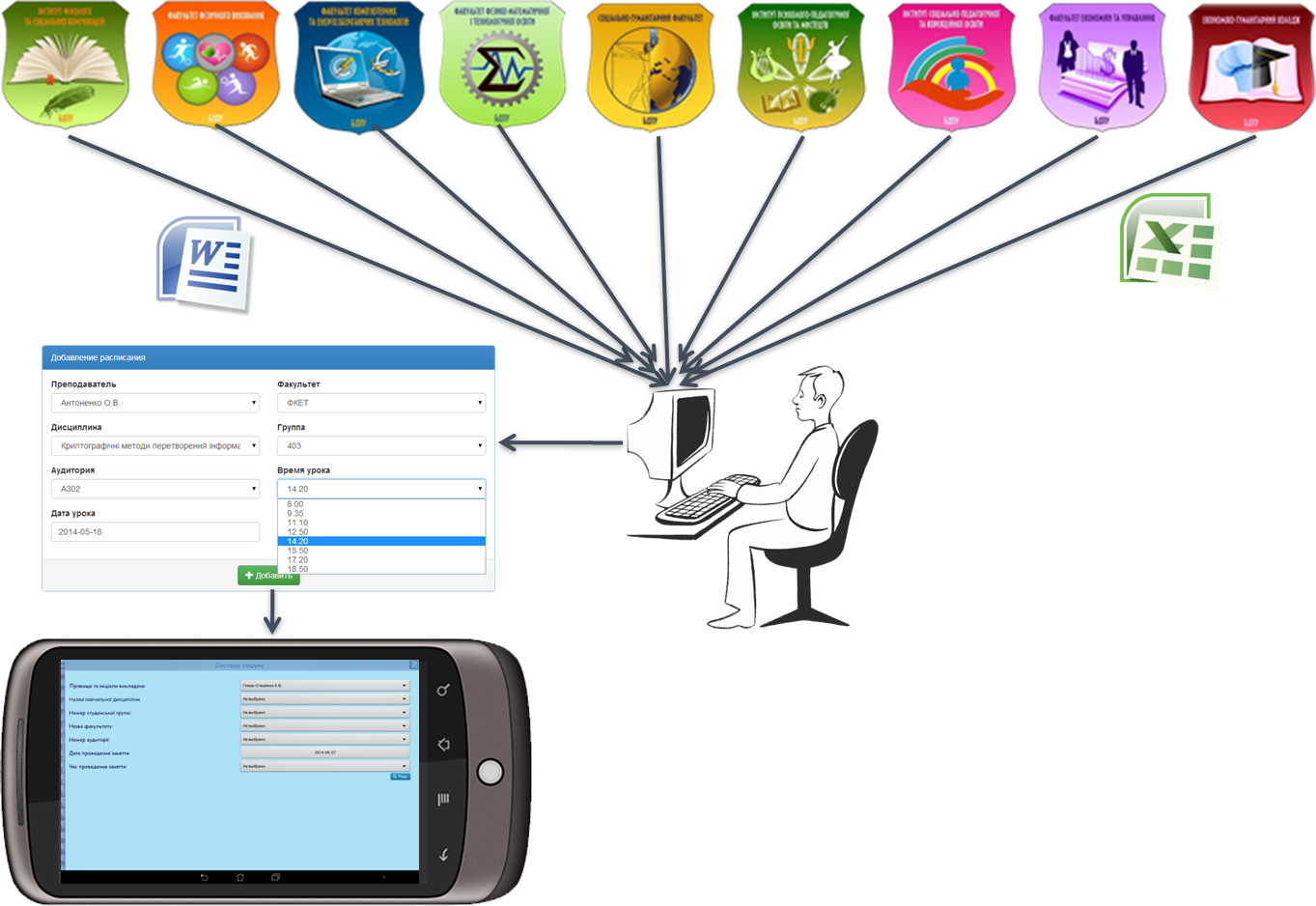 Різноманіття форм доступу до ЄОС (єдиної освітньої системи) забезпечує зручний спосіб взаємодії з системою незалежно від часу доби та місцезнаходження користувача. Певний набір дій, як для викладачів, так і для студентів, може здійснюватися набагато легше й швидше за допомогою, наприклад, мобільного додатку, ніж повноцінного додатку для персонального комп'ютера (ПК). Звичайно, функціональні можливості мобільного додатку відрізняються від програмного забезпечення для ПК, що обумовлено власне призначенням самих мобільних пристроїв. Наприклад, складати розклад занять на смартфоні досить незручна операція, проте переглянути цей розклад, чи знайти в ньому необхідну інформацію за допомогою запиту, незалежно від часу та місця знаходження, легко й доступно.