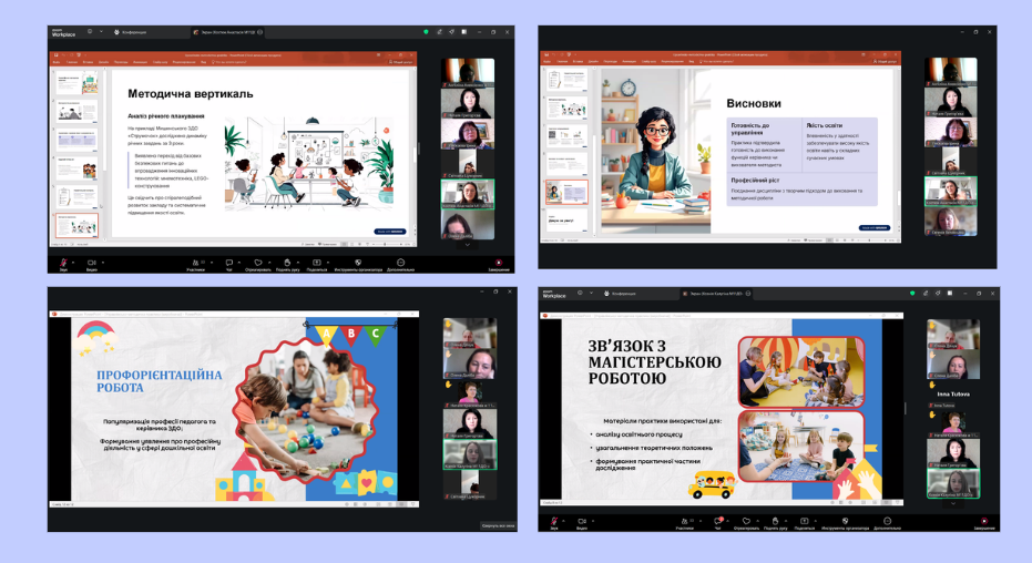Захід став важливою підсумковою подією, що дозволила студентам презентувати результати роботи у закладах дошкільної освіти та поділитися власними управлінським досвідом, практичними спостереженнями й фаховими висновками.